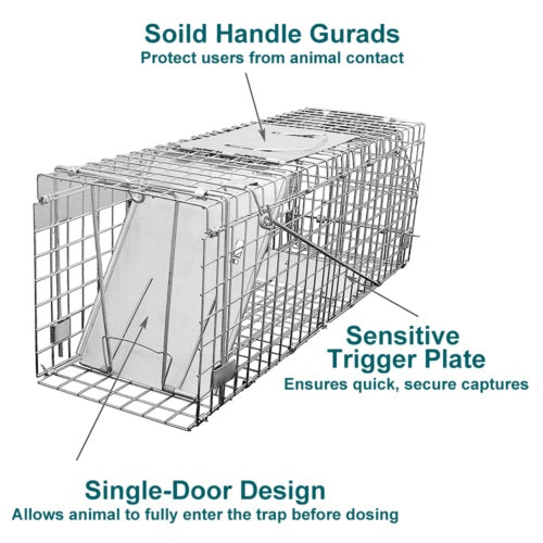 Whether you're rescuing a stray cat, managing wildlife, or preventing garden intrusions, this trap provides a chemical-free, reusable solution that’s easy to set, bait, and release.
